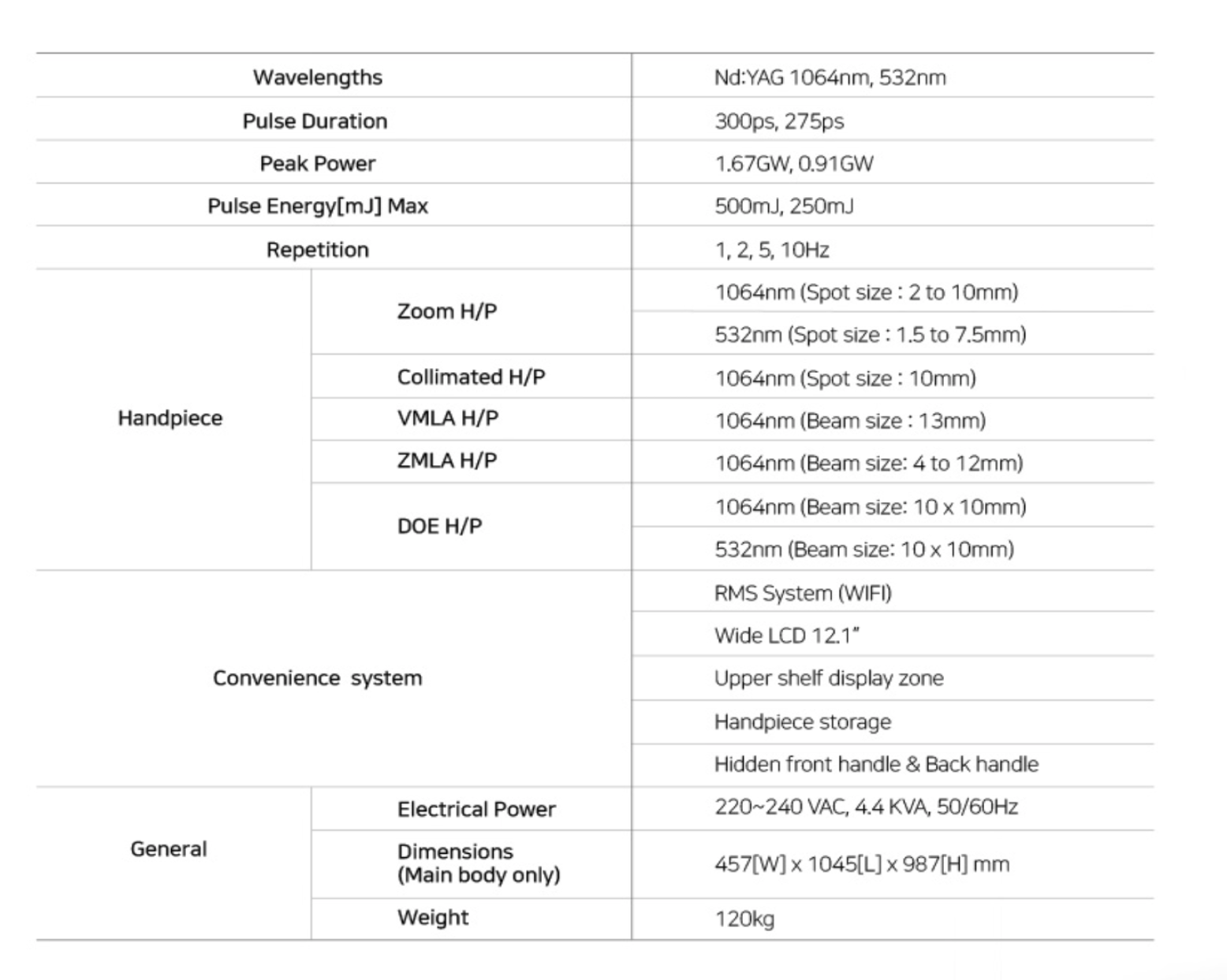 El tiempo de relajación térmica (TRT) de las partículas de tinta para tatuajes de 10 a 100 nm es de 100 ps a 10 ns. 300ps está equipado con una duración de pulso adecuada para destruir partículas más pequeñas que otros láseres de picosegundos.